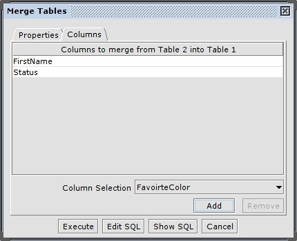 Next you can select the columns to be merged from the other table into the selected table in the "Columns" tab.