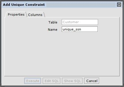 Next you have to choose the columns of this unique constraint in the "Columns" tab. At least one column has to be added.