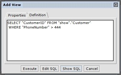 Next you have to specify the query that defines the view's content in the "Definition" tab.