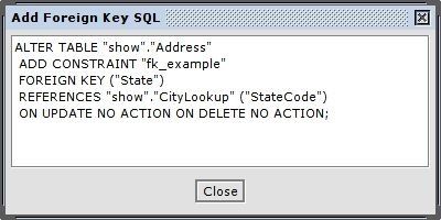 First, choose a table to add a foreign key constraint to and right-click to access the refactoring menus. (Refactoring > Referential Integrity > Add Foreign Key)