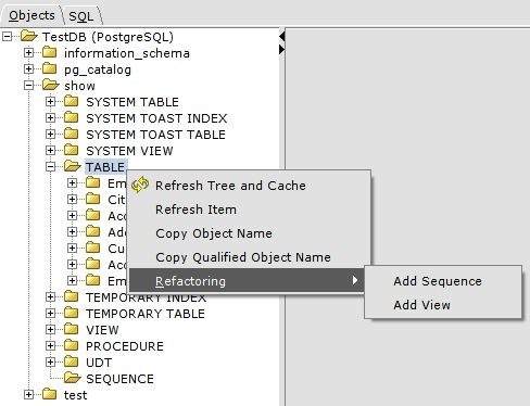 Depending on the node or database object you're clicking on, the refactoring menu will provide different refactorings: