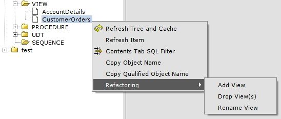 Right-click on a view/sequence to access the context menu for view/sequence specific refactorings.